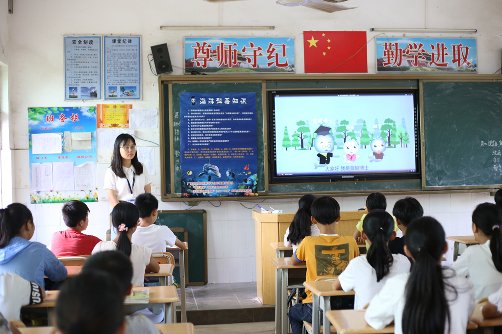 7月21日下午,岭南师范学院法政团委“三下乡”社会实践队于下六中学开展海洋科普教育活动。该活动以各班学生在班里观看由岭南师范学院张立敏老师提供的“海洋探秘”的科普动画作品的形式开展。