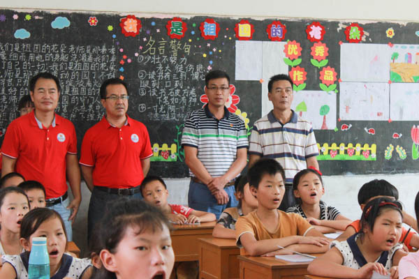 “ 高飞”社会实践队所在的下海小学是今年新开辟的实践基地。学校校长严春雄十分肯定实践队的教学水平和工作能力。在深入了解学校教学情况和食宿情况之后,李发武指出队伍在打造支教特色的同时,要积极宣传党的十九大精神,推进习近平新时代中国特色社会主义思想深入人心,并为加强基层党建工作提供力所能及的帮助。同时,他还大力鼓励队员为人民群众服务、向人民群众学习,不断扎根基层锻炼,为来年与学校的支教合作打下基础。