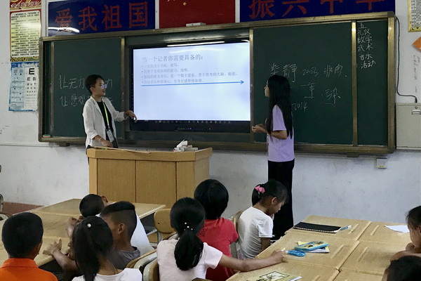“让无力者有力,让悲观者前行。”7月23日上午,来自“绿光”社会实践服务队新闻组的三位成员走上二班讲台,从“绿光”新闻人摇身一变成为新闻课小老师,为学生介绍记者这一职业,传递媒体人的社会责任感和使命感。