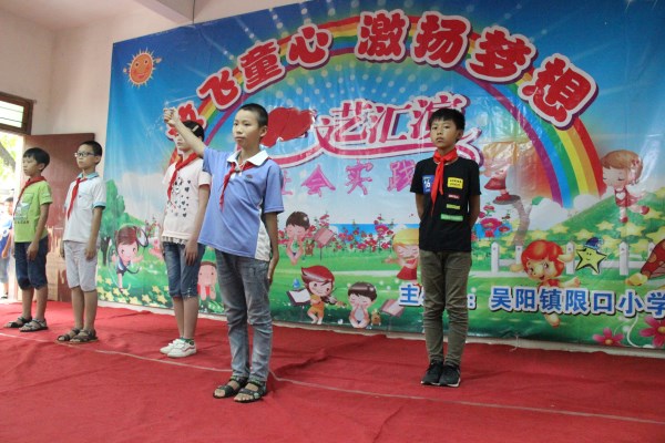 7月24日下午3点半,“织梦”社会实践队在广东省湛江吴川吴阳镇限口小学举办“放飞童心,激扬梦想”文艺汇演,限口小学校长彭健、“织梦”社会实践队成员、全校学生、还有部分学生家长共150多人出席本次汇演,为2018年岭南师范学院“织梦”社会实践队下乡支教活动画上一个圆满的句号。