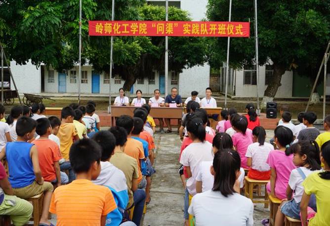 青春如火,梦想如花。经过三个月的精心准备,“问渠”实践队终于在2018年7月16日上午于山内黄镜秋学校的大操场迎来开班仪式。