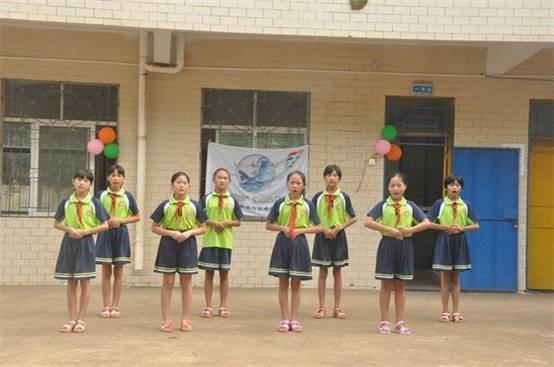 实践队队员们一早布置现场并进行一次简单的彩排走场,检查设备和确认活动流程,所有事情准备完毕由洪幸主任发言宣布活动正式开始。首先由校领导给队长、队员们颁发聘书,对下乡支教的队员们给予了高度的肯定。梁主任表示这是第一支来到孟岗小学的队伍,也是将被记入校史的实践队伍,希望实践队有机会能再回来看看,传授给以后的实践队相应的经验。