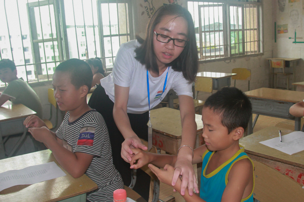 随着社会的发展,特殊群体逐渐受到社会各界的注意和重视。为了使学生们更深入了解特殊群体中的听觉障碍者,“伴我同行”社会实践队于7月22日在贵州省铜仁市新店寄宿制学校开展了特色手语课。