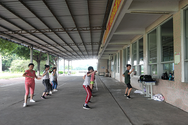 岭南师范学院“笃行扬梦”社会实践队通过志愿报名方式,挑选出三批优秀的军学堂成员,由黄永兴、吴金菊、邵罡三位教官分别带领他们进行军体拳、匕首操、枪械战术的军事汇演节目练习。7月29日,“笃行扬梦”社会实践队为文艺汇演准备军事节目,在周末时间开展节目表演排练活动。