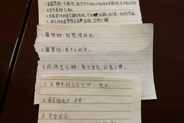 孩子们写下的三个问题(卢诗琪摄)