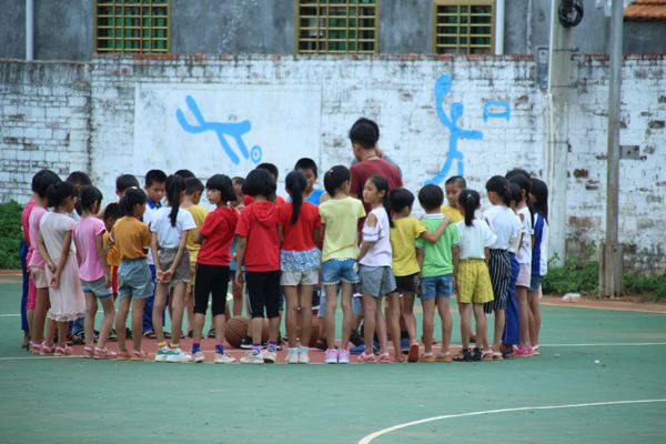 篮球其实是一种很普遍的球类运动,但是孩子们没有受过比较系统的训练,还不太明白有相关的比赛规则,再加上篮球的供应有限,所以渐渐地淡化了他们对篮球的兴趣,针对这种现象,支教组篮球老师华世豪、郭志伟想出了特别的教学方法,课堂上游戏与教学相结合,他们让学生上课时围成一个大圈,改变了传统体育上课的方阵队形,与孩子们变得更加亲近,他们在圈内讲课,向孩子们讲述了篮球的起源,篮球的规则与一些相关的篮球技巧。