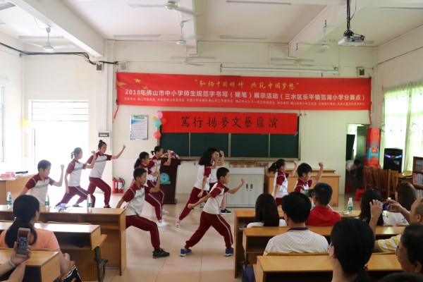 本次文艺汇演的表演节目由4名优秀学生代表主持,以军体拳为开场预热,以匕首操为中场高潮,以枪械射击为后场缓冲,同学们一个挥拳一次转身一脚踏步,都大喊一声“杀”,拼尽全力的演出;梁猷权同学一人持剑表演,在抱拳敬礼后,一个闪身一次剑落,迅猛快捷,惹得台下瞠目结舌;舞台走秀,小模特神采飞扬,通过肢体语言给观众展现了单人点赞飞吻、双人拍掌比心、三人连圈对舞等走秀;一首《隐形的翅膀》,1班同学在歌声中为梦想播种;一首《让爱传出去》,唱响了2班同学们充满爱的祝福和阳光温暖的童年;一首《岁月神偷》,全体实践队队员唱出了离别,唱出了依依不舍;告别视频剪辑了孩子们在十二天里的点点滴滴和支教组老师们对孩子们说的话,队员们12天的相处时间停留在画面中。