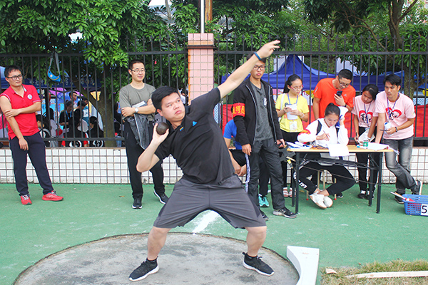 “持球、推球、落球”,每个老师的扔球姿势各有特色,远远高飞的球引起围观者的阵阵惊叹。一些老师蓄力过猛,扔球以后在摇摇晃晃中踏到扔球线外,或把球飞到界线外,使围观的老师不住惋惜。经过六轮掷球的角逐,在众人的欢呼声中,来自机关二的陈俊宏老师以12.93m的佳绩勇夺男子青年组铅球比赛的冠军。