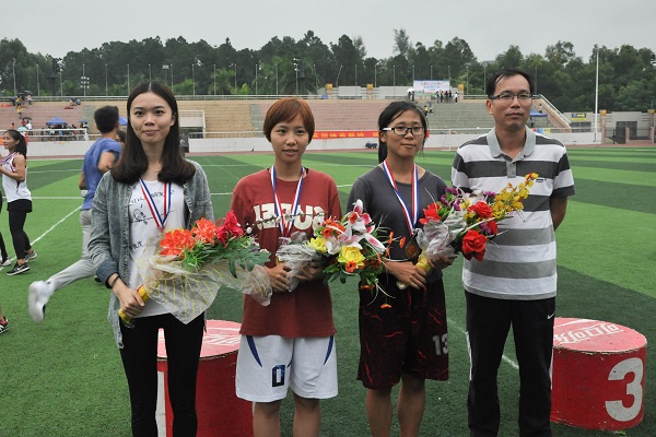 与此相比,获得女子跳高冠军的苏素眉则表现得心花怒放。对于今年能夺桂冠她表示些许意外,因为去年她只拿了第四名。“腿长是我跳远的一大优势,同时我觉得爆发力和技巧同样重要,作为一个优秀的运动员就应该两者兼备。”苏素媚说道。在一旁连夺两年男子跳远冠军的黄国俭说:“我觉得素眉很有运动天赋,我也很愿意带她,我希望她能继续带师弟师妹们一起为我们信息院争光,我看好她”。
