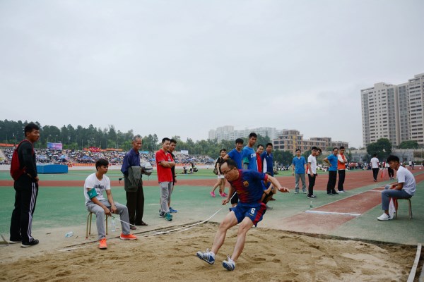 褪去课堂上谆谆教诲、传道授业的学者形象,在田赛、径赛中老师们也不输学生运动员们的活力与实力。在女子青年组100米竞赛中,童慧丹老师频频赛出成绩;男子中年组跳远中,黎祎主任向大家展示了一个又一个强有力的跳跃弧度。
