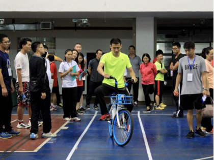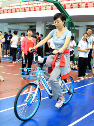 岭师新闻中心讯:“加油加油!”赛场下的观众焦急地对着正比赛的选手喊道。11月17日下午,来自各个单位的教职工在体育馆进行“教工趣味项目组自行车慢骑”的男子组与女子组决赛。来自体育学院的于志刚老师和来自信息学院的张玮老师以2分18秒和1分40.5秒的佳绩分别夺得男子组和女子组比赛的桂冠。