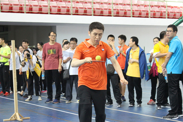 岭师新闻中心讯:“加油!稳住!”“掉了掉了!”体育馆一楼,欢呼声、呐喊声一浪接着一浪,现场气氛热烈,笑声掌声不断。11月17日下午,一场由教职工参加的托网球“s型”绕杆接力赛在我校体育馆一楼开展。在现场观众的阵阵欢呼声中,比赛徐徐拉开帷幕。