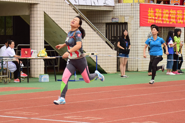 岭师新闻中心讯:11月18日上午10点,教工中年组50米决赛拉开序幕,老师在同学们的加油鼓劲声中全力冲刺,奔向终点。在男子中年组50米决赛中,获得第一名是商学院沈炜老师,成绩为7.03秒;第二名是体育学院于志刚老师,成绩是7.14秒;第三名是机学院的黄志伟老师,成绩是7.22秒。在女子中年组50米决赛中,获得第一名的是体育学院的安剑群老师,成绩是8.03秒;第二名是教科院的陈秀芹老师,成绩是8.84秒;第三名是机关一的庞建清老师,成绩是9.17秒。