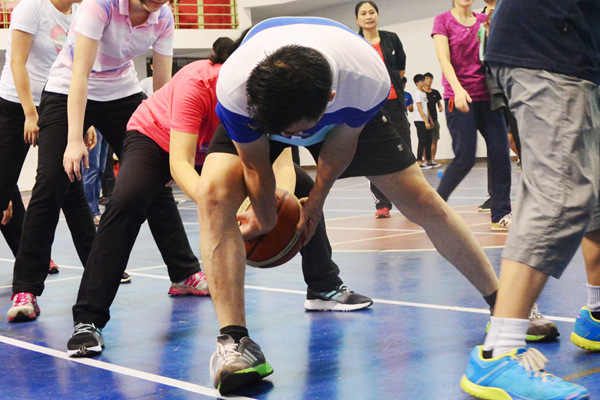 各参赛队伍均在赛前10分钟投入积极备战的状态,或商量着战术,或专注实践,“捞月大战”一触即发。比赛正式开始,选手们以前后一臂距离排成纵队扎马步,他们以篮球为“月”,从首位队员开始,依次从胯下传递“月亮”。体科院代表队因马步扎得稳当,传球不受干扰,加之配合有序,率先完成比赛。外语院代表队结合女队员传球不熟练的实际情况,精心制定了“女前男后传球”的战略。而其他代表队也不甘示弱,各出奇招,配合默契,精彩的比赛引得观众们拍手叫好。