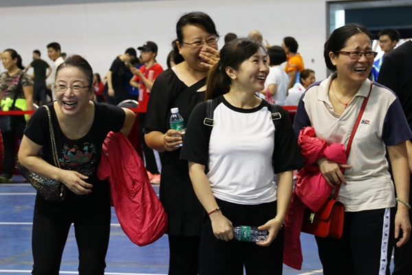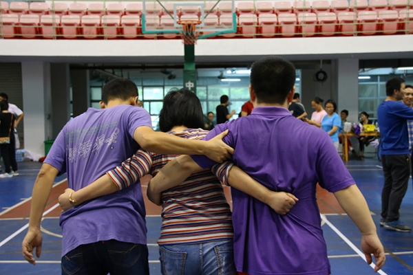 岭师新闻中心讯:“一二一,一二一,一二一”、“加油啊!脚抬高一点。”老师们大声喊着口号,互相为对方加油,脚步协调一致的跑向终点。11月18日上午,一场别开生面的比赛在我校体育馆举行——教职工趣味比赛之三人四足。各二级学院、图书馆、后勤会、机关分别派出代表队参与这次的比赛。