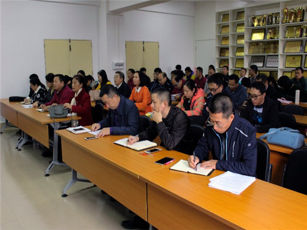 11月22日下午,商学院邀请到学校党的十九大精神校内宣讲团成员、马克思主义学院副院长夏松涛副教授在学院会议室开展了党的十九大精神专题辅导报告。商学院领导班子以及全体老师出席了这次活动。