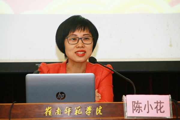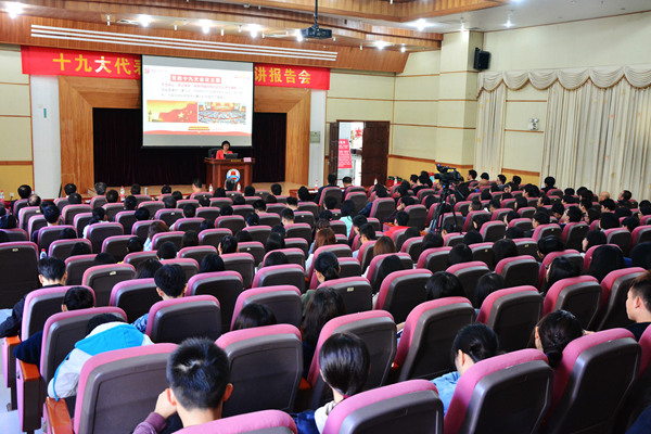 岭师新闻中心讯:“不忘初心跟党走,立德树人有作为。”12月5日上午,党的十九大代表、全国千名高校辅导员巡讲团成员、广东省教育系统宣讲团成员、广东技术师范学院文学与传媒学院副处级辅导员陈小花应邀来我校宣讲党的十九大精神,分享参加党的十九大的点滴体会和感受。会议由学生处副处长陈永国主持。