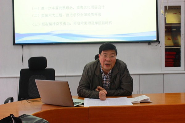 刘贵昂作总结讲话,他指出何增光教授的专题报告讲的非常精彩,让大家受益匪浅,也让我们对党的十九大精神有了更深刻、更透彻的认识,并希望全体教师能够结合党的十九大精神,立足教学,服务学生,为学院、学校的发展贡献出自己的力量,
