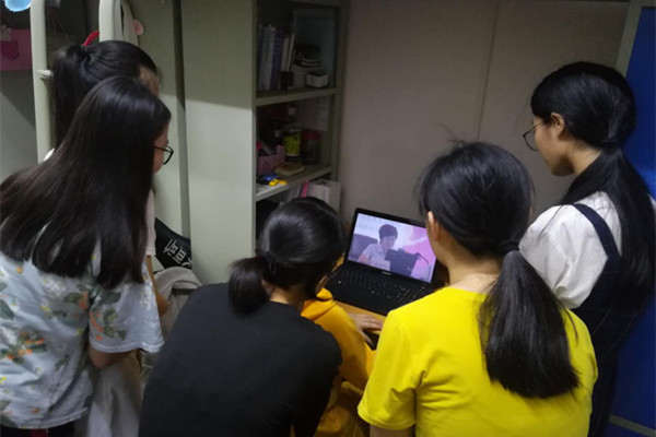 学生们在宿舍用电脑收看“云端课堂”(化学化工学院供图)