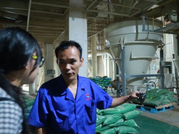 从污水处理厂出来后,实践队前往工业园内的一家饲料厂展开调研工作。在工厂工作人员那里得知,工厂平时的生产饲料产生的锅炉废水都有专门的设备对其进行循环利用,或通过净化处理之后再排出厂外,附近村民曾向实践队反映这家工厂经常散发出难闻气味,但工作人员表示气味虽然不太好闻,但用于生产饲料的原料都是农产品,散发出的气味是无毒无害的。