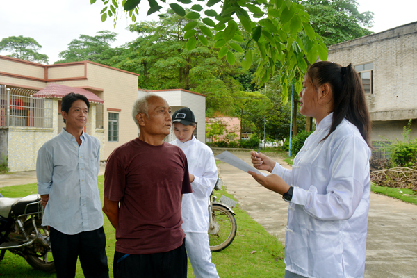沙地村老年人口多,老年人身体保健就显得尤为重要。为此,“萌芽”社会实践队的队员们带领着“太极精英班”的学生们走进沙地村,向村民介绍打太极的好处及其文化。图为队员们向村民介绍太极。