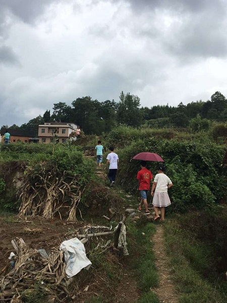 由于学校的位置偏远,学生们普遍离学校距离较远,每天大概要走40分钟至1个小时的路程才可到达学校。队员黄佳如表示,岩门方向的部分路段遍布坑坑洼洼,这个方向队伍里的孩子,需要早上五、六点起床才能准时八点半到达学校上课,皮肤也因中午太阳的长期曝晒而变得十分黝黑。她又补充道,对于学生坚持来上课,她虽然感到很开心,但更多的是心疼。学生们对“伴我同行”社会实践队下乡工作的支持,是队员们坚持每天护送学生回家的动力源泉。他们总是不辞劳苦地陪同最后一位学生安全到家后才返回学校。学生家长曾多次表示说,“他们都会自己回来,不需要送他们回家。”但“伴我同行”社会实践队的队员们仍坚持护送学生回家,是对学生安全问题的高度重视,也是爱护学生的自然情感流露。