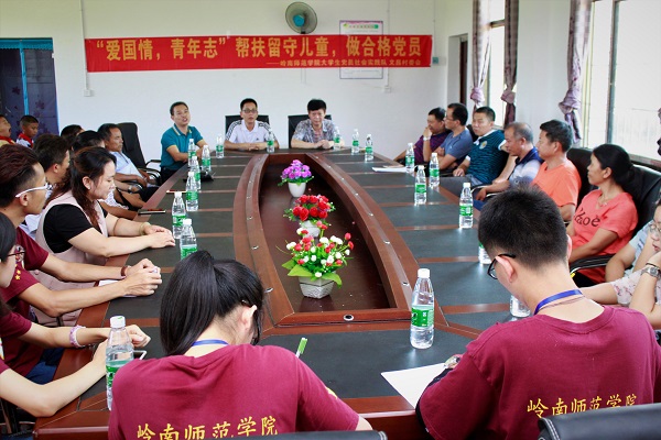 我校领导和邵阳县领导、校长于学校会议室召开座谈会。会上,蒋事新代表文昌村以及文昌完小全体师生欢迎我校领导和“伴我同行”社会实践队的到来。郭和才表示,“伴我同行”社会实践队作为广东省委教育工委2017年暑期大学生党员社会实践项目队伍,代表岭南师范学院学子,全体队员使命光荣,责任重大。同时,他也希望实践队可以向邵阳县当地教育局全方位讨教,利用本次社会实践活动的机会与邵阳县共建教育新天地。莫孙冶则希望湛江与邵阳可以经常交流和来往,共建教育事业。