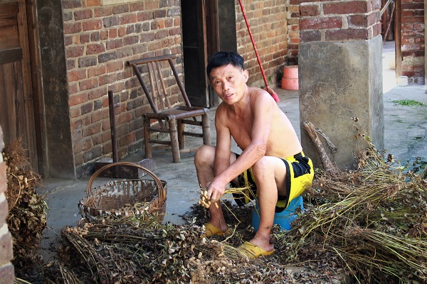 在村口不远处坐着几位正在剥花生的老人和孩子,一番礼貌的自我介绍后,调研队员道明了来意。其中一位皮肤黝黑的老伯眯着眼睛认真地听完队员的介绍后,一边用邵阳本地话示意坐在身旁的两个孩子去把手擦干净做问卷,还一边热情地招呼队员进屋等待。