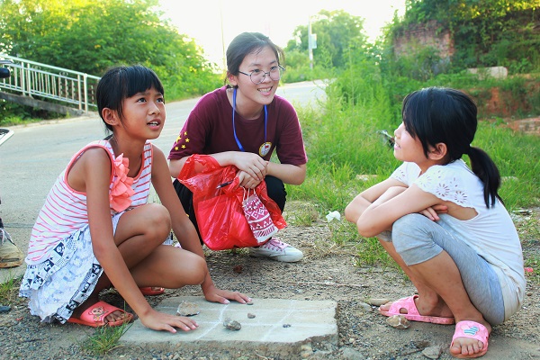 “伴我同行”社会实践队此次的实践活动除了在邵阳县小溪市乡文昌小学开展支教活动外,还开展了关于留守儿童与同伴关系、自信水平与社会适应性的调查。8月20日,调研队成员来到小溪市山田村附近,对当地儿童进行了问卷调查。