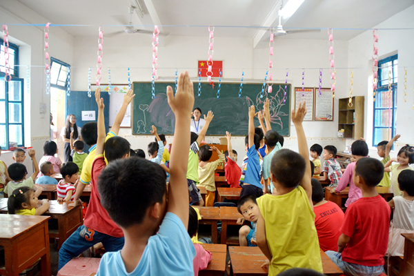 支教组的“小老师”在语文教材选择与编印上别出心裁,所选的皆是以诚信待人,尊老爱幼为文化内涵的中国传统优秀文化,如三字经、成语故事等。同时还改变了一般“灌输式”教学方式,他们通过诗歌朗诵比赛的方式让学生敢朗诵、多朗诵,由普及知识深化为培养能力。