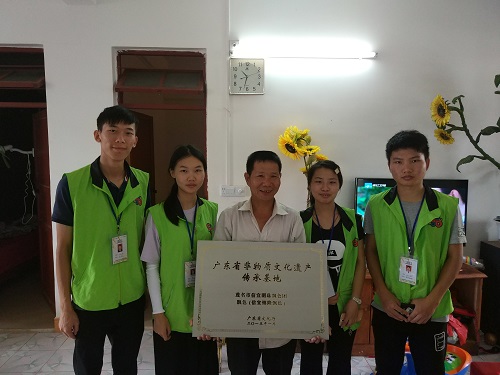首先,调研小组来到镇龙镇飘色文化团进行文化调查访谈。经文化团广东非物质文化遗产继承人刘成球先生团长介绍,“红土”队员们了解到飘色是中国一项古老民间艺术,有着悠久的历史,取材于神话故事和古典传统戏剧,是一项带有艺术特色的民俗文化,其巧夺天工的画面,精湛的技巧犹如腾云驾雾般的神奇,后来结合时代的发展进行创新完善,堪称中国民俗一绝。接着团长说到飘色的传承问题,他表示目前越来越少的人去表演或了解飘色文化,这加速了飘色文化的衰落,并希望通过这次机会,让更多人了解飘色的魅力。