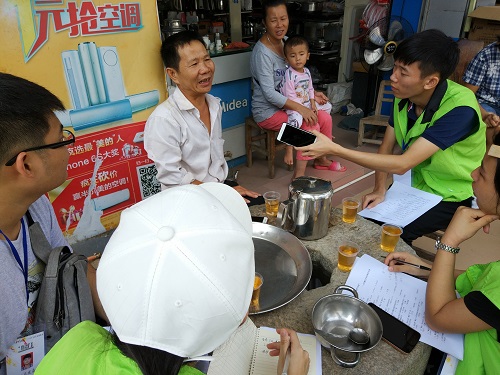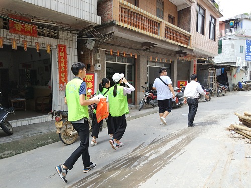 在调研中,为了更深层次地了解、认识飘色艺术,队员们决定走访群众进行问卷调查。队员们不惜顶着炎炎烈日,走街串巷,一路分发调查问卷,一路询问路人对飘色文化的了解程度以及对信宜飘色文化的发展的态度和价值。