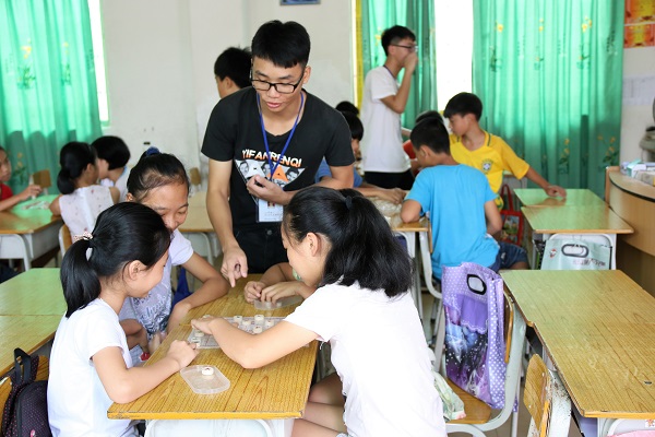 7月6日早晨,淅沥雨后的天空出现了两道若隐若现的彩虹,实践队员们欣喜地在忙碌,孩子们也满怀期待地早早就来到了课室。