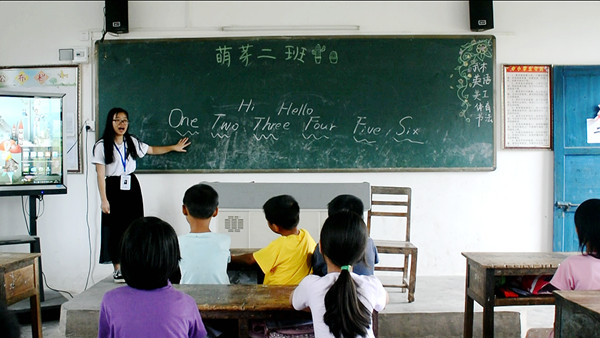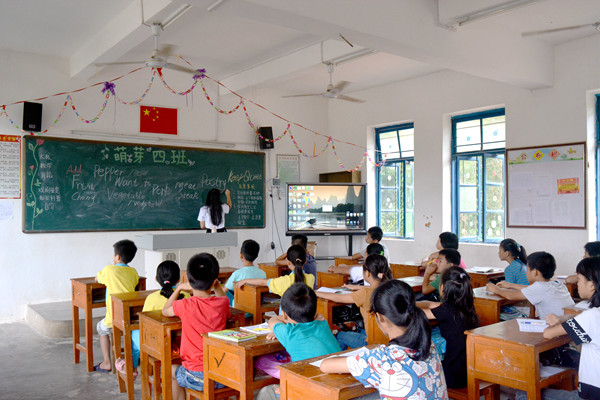 7月6日上午,萌芽实践队支教组成员在二班开设英语课堂。在支教前,二年级从未接触过英语课,为提高学生对英语的兴趣,支教组采用趣味英语的方法进行授课。