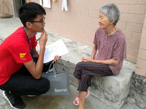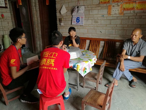 一开始,“红土”调研组成员对学校附近的居民区进行了走访。炎炎夏日,路上蒸发的热气扑面盖来,但是成员们秉持着“红土”精神,毅然坚持着。组员们围绕“关于精准扶贫在信宜农村地区的落实情况”主题积极的访问路人,由于大多数人都不了解这个政策,于是,调研组成员们决定改变方针,从村里的扶贫户开始调查。