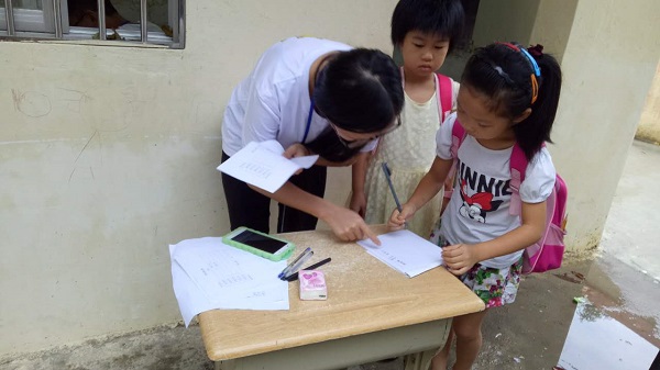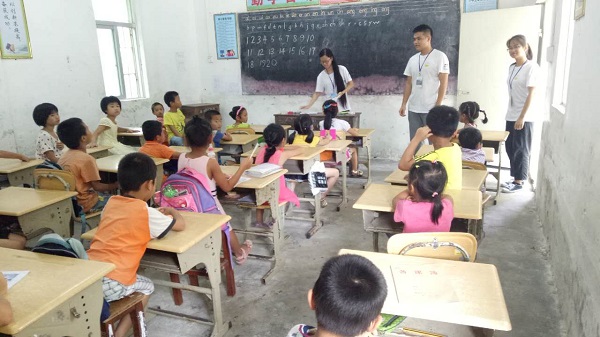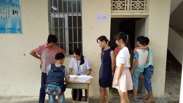 一大早,支教组和文艺组的成员就布置好所需教室,并在教室门口等待学生登记。根据年龄段,队员分别把学生分到大班、中班、小班。虽是清晨,但现场报名情况异常火爆,不断有家长送孩子过来报名,并咨询小老师相关问题。