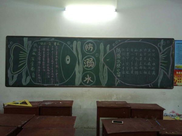 商学院依米花社会实践队对此次三下乡课程做了精心的准备,除了准备课程和开展活动以外,我队宣传组为可爱的孩子们制作了关于"快乐学习"和"安全教育警钟长鸣"等的主题黑板报,为教室增添了一道特别的风景,也使学生的意志品质得到熏陶,使学生的思想道德能够有所提高,使黑板报成为班级育人的主阵地。