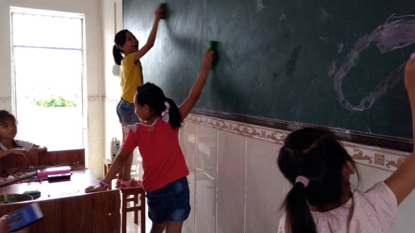 7月7日上午,宣传组全体成员的任务是完成abcde五个班的黑板报。由于上课期间不允许绘制黑板报,因此宣传组上午的大部分工作都是在擦黑板、去除原来的黑板报,当然也得益于孩子们的热心帮助,五块大黑板很快就擦得干干净净了。