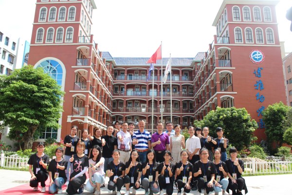 吴川市团委高华德副书记、我校团委李发武书记及我校其他领导在博雅幼儿园园长及其他领导带领下,对该幼儿园的环境和历史文化进行参观和了解。在走访中,高华德副书记及我校领导关切问候“笃行”队员的实践情况,参观了各个班级的学习情况,并与园长面对面交流发表心得。高华德副书记对幼儿园环境、住宿环境、饮食条件、教学活动等方面进行走访观察,对“笃行”社会实践队的实践成果给予高度肯定。