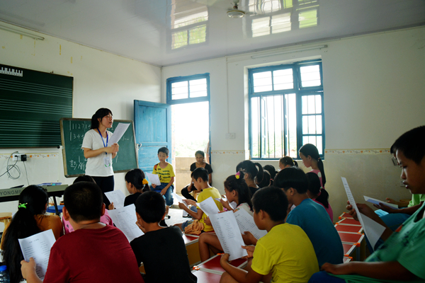 7月7日下午,“萌芽”社会实践队支教组成员杨青丽在四班开设音乐课。在这节音乐课上,音乐老师杨青丽教会了四班的学生唱《当那天来临》,燃起学生们爱国的斗志,壮我军威、震撼心灵。