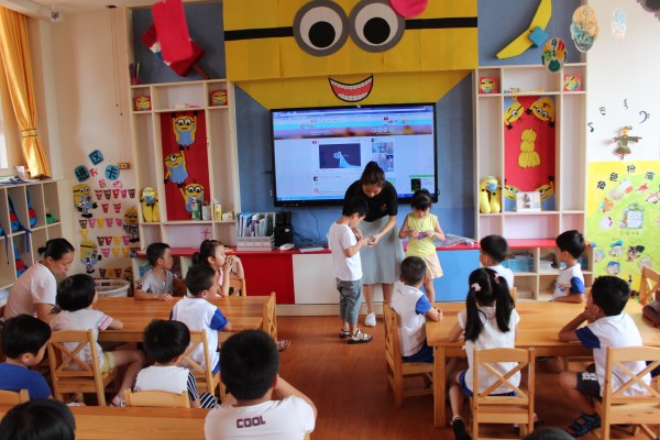 据了解,课堂气氛最活跃的是大c班的“雪花魔法”课。“雪花魔法”是一节运用中国传统剪纸折叠法达到学会剪窗花目的的手工艺术课。手工以“冰雪奇缘”图片作为引入来引起小朋友的注意力和兴趣。两位小老师在示范折纸过程后,分别带领一个小组的小朋友并耐心地帮助他们完成剪雪花的步骤。每个小朋友都专注地剪着自己的雪花,小朋友们在看到自己的成果后,纷纷兴奋地和小伙伴分享,并向老师们展示他们漂亮的雪花。小老师将前一晚精心准备折好的立体折纸小兔子奖励给了优秀的小朋友。