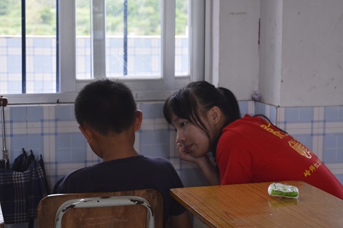 当“红土”小老师来到现场的时候,看见了那个女生趴在桌子上哭,而那个男生却在一边打打闹闹。老师找来了其他同学了解了经过,原来是男生抢了女生的同学录看,却不肯还,女生打了男生一下,男生还手了,可能男生力度比较大,导致女生哭了起来。小老师找来了男生谈话,告诉他你这样是不对的,让他跟女生道歉。因为男生年龄比较小,不够成熟,不能正确判断是非,觉得是女生先打他的,不肯低头向女生道歉。后来,大概是事件动静比较大,越来越多“红土”的小老师来到了现场,都加入了劝男生道歉的行列。男生觉得老师是在责怪他,慢慢地呜咽了起来,这让红土老师们手足无措。最后,老师们觉得可能是人太多了,独自叫了小男孩出去谈心,安慰了他,小男孩也渐渐冷静下来。小老师也找了女生谈话,而女生心智相较成熟,觉得自己也有错,不应该先动手打人,愿意向男生道歉。最终,在两人的握手言和后事件告了一段落。