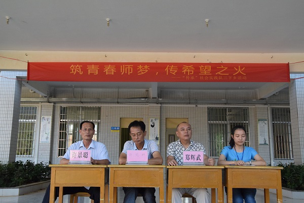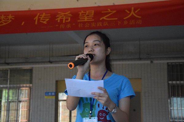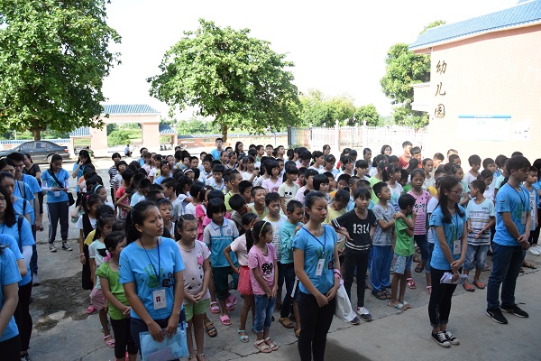 为落实全国高校思政会议精神,以优异的成绩迎接党的十九大胜利召开,全面铺开共青团改革实践,推进学校教育事业发展。7月9日早上,传承社会实践队于湛江市遂溪县许屋学校开展了以“筑青春师梦,传希望之火”为主题的开班仪式。出席本次仪式的领导和嘉宾有许屋村村委副主任许光卿,许屋学校校长郑辉武、许屋学校主任许景聪以及“传承”社会实践队全体队员和145名学生。