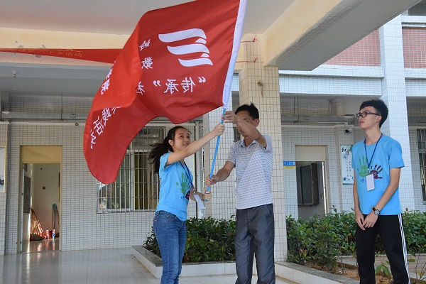 许光卿为该队授予队旗,并宣布岭南师范学院“传承”社会实践三下乡活动正式开始。接过队旗,队长温丽怡代表该队全体队员宣誓,在未来的十天里,该秉承“崇德、博雅、弘志、信勇”的岭师精神,践行“传道授业,承恩布泽”的实践理念,弘扬教师无私奉献的精神,运用专业知识传播先进文化,奋发进取。