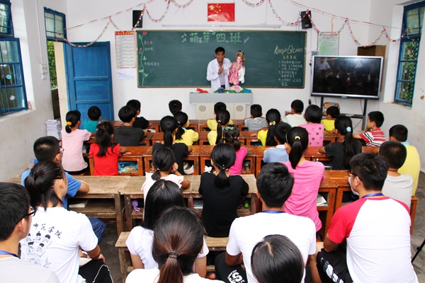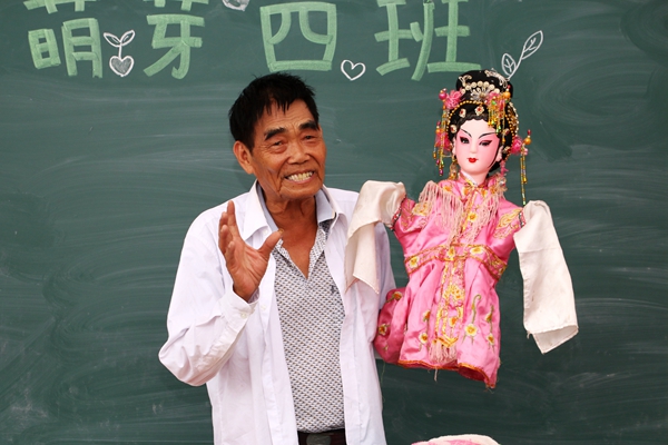 7月9日下午,“萌芽”社会实践队邀请广东民间文化技艺大师梁东兴到沙地小学讲授传统文化知识与木偶戏发展史,旨在提高当地学生的传统文化素养。