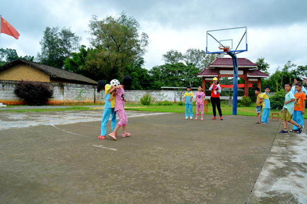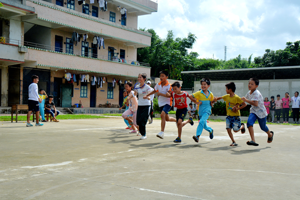 7月9日上午,随着一声哨响,“萌芽”社会实践队趣味运动会的集体项目——双人背靠背夹足球接力赛和集体跑正式拉开了帷幕。“萌芽”三个班的选手们在操场上展开了激烈的角逐。