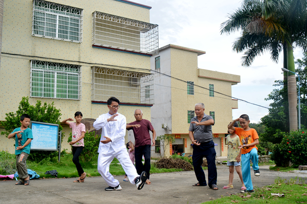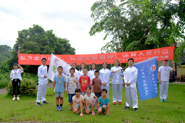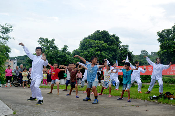 为响应国家全民健身计划、激发大众健身活力、推普太极入乡村,7月9日下午,5名岭南师范学院体育科学学院“萌芽”社会实践队队员率7名沙地小学“太极精英班”学生于高州市大井镇沙地村胜利农场举办太极二十四式表演,现场指导村民学习传统武术太极拳。