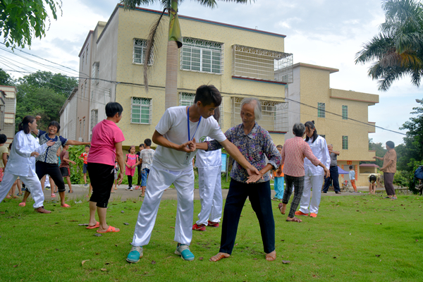 “我们老了,平时看视频总是无法看清楚细节,就算有心学习太极也无能为力,你们大学生能来现场手把手教我们打太极实在是太好了!”一位老爷爷在接受太极拳指导后激动地表示将坚持练习太极,他认为传统武术能舒筋活血、强身健体,比打麻将有意义得多。