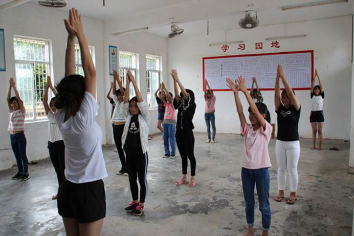 7月10日下午,杨柑中学的初二六班孩子们迎来了第一节舞蹈课,授课的小老师是来自外国语学院“萤火”社会实践队的蒋丹萍老师,阮雪怡老师。