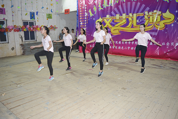 文艺汇演节目包括歌曲、舞蹈、武术等方面的表演。其中实践队男队员们表演的武术表现出男儿血性方刚的秉性,打五步拳时身体协调,舞棍时刚劲有力。由一年级学生表演的舞蹈《咖喱咖喱》音乐轻快明朗,舞蹈活泼童趣,小学生们整齐地舞动。最后由实践队全体队员和世乔小学全体学生合唱《没有什么不同》,声音嘹亮,气势恢宏。